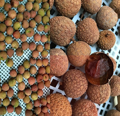 2、通常,加工商在采用荔枝干烘干機進行干燥的時候,可以根據不同的需求采用不同的工藝。一種是直接將新鮮的荔枝進行篩選后放入烘干房進行干燥。另一種則是在烘干前前先進行高溫殺青護色,再進行烘干。經過殺青的荔枝,烘干出來的品相會更好,色澤艷麗。故此工藝也比較常被采用。殼面自然扁癟,龜裂均勻,顆粒大而均勻,用手指捏或牙齒咬脆而易碎,且發出聲響。